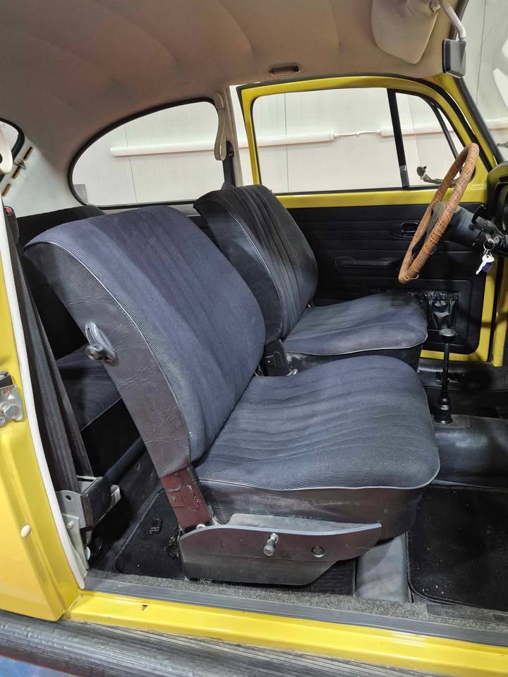 (Texasgelb was a normal 1973 model year colour for the Beetle which on standard production models was complemented by colour matched plastic beading between the body and wings. Interestingly this surviving example breaks from this norm by having black plastic beading consistent with other contemporary SEB models finished in 1973 Karmann palette colours not normally used on standard production Beetles.) Accent to the paintwork was provided by all-black external trim and bumper trim tape, colour-coded to the paintwork.