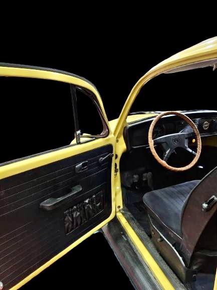 (Texasgelb was a normal 1973 model year colour for the Beetle. The other two colours were 1973 Karmann palette colours not normally used on standard production Beetles and were therefore finished with black, instead of paint colour matched, plastic beading between the body and wings).